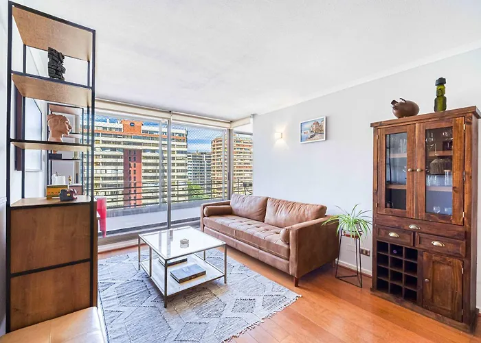 The 64 m² Castano Home - Ac & Estacionamiento En La Ciudad Santiago apartment is located in a metropolitan area of Santiago, 2.5 km from the friendly Bicentenario Urban Park.